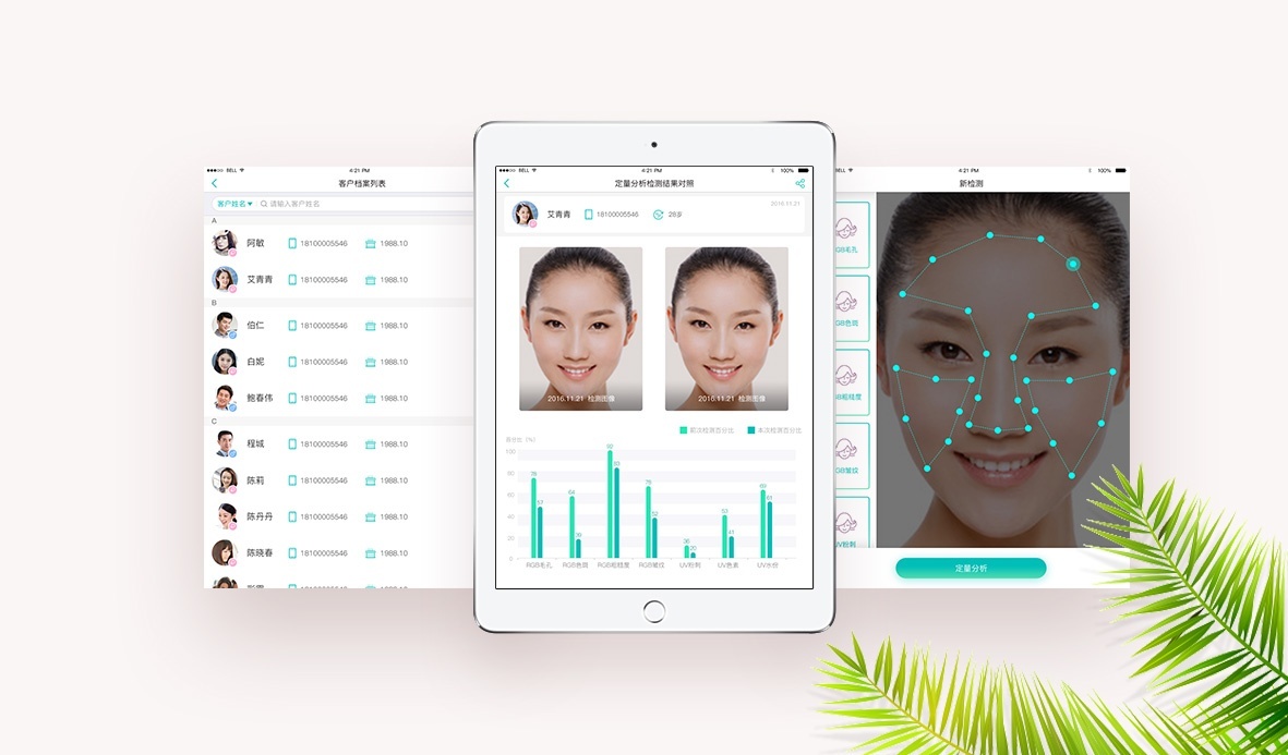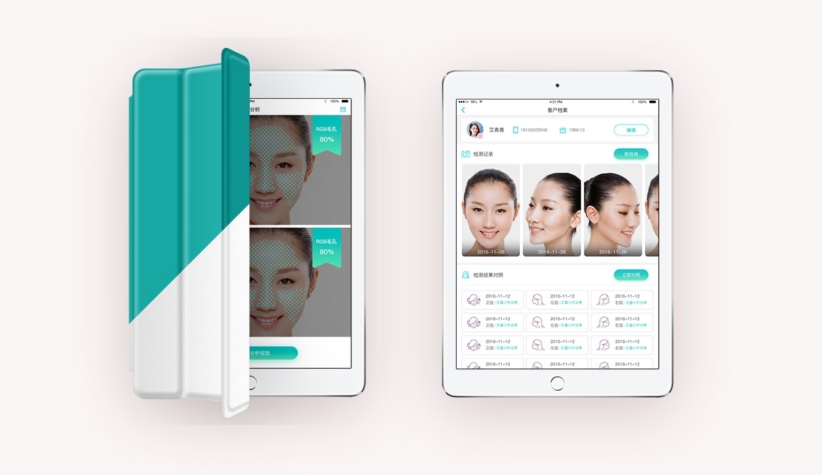 朗迪科技攜手韜藝設(shè)計(jì)一款專業(yè)級美容“魔鏡儀”智能設(shè)備,“魔鏡儀”可以更深入地了解皮膚的各種狀況,包括肌膚真實(shí)年齡與各種健康指數(shù)、需要關(guān)注的問題和急需改善的問題。韜藝科技為此款智能設(shè)備定制用戶體驗(yàn)設(shè)計(jì)、交互設(shè)計(jì)、UI設(shè)計(jì)。