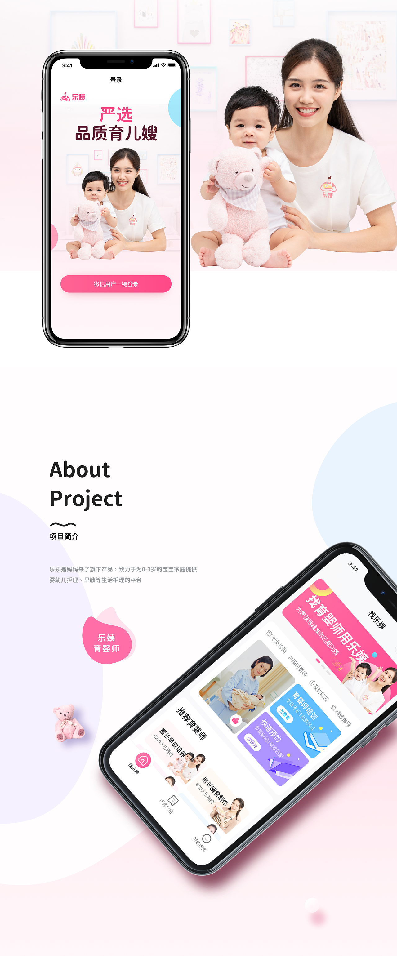 樂姨育嬰小程序,致力于為0-3歲寶寶都家庭提供嬰幼兒護理、早教等生活護理都平臺。